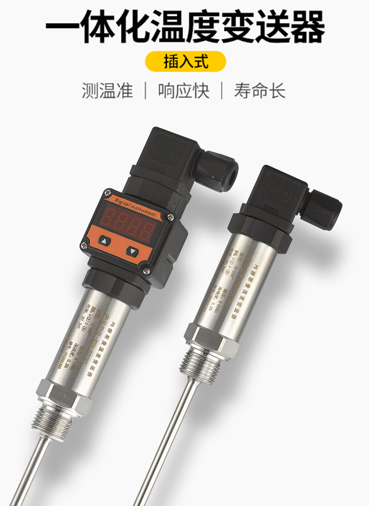 一体化温度变送器PT100铂热电阻数显铠装传感器温度传感器4-20mA