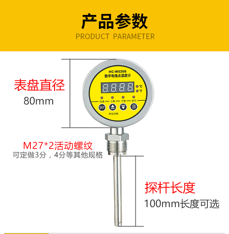 数字电接点温度计一体化智能温度控制仪器双金属电接点温度计可调