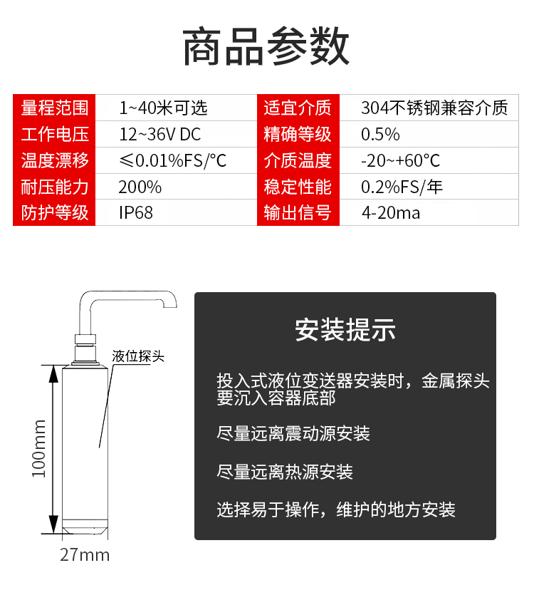 消防水箱水位显示器液位变送器传感器电子水池投入式液位计控制器