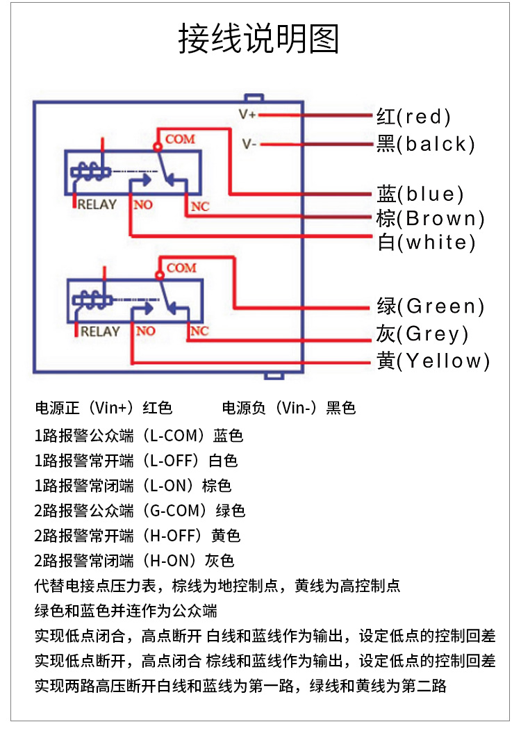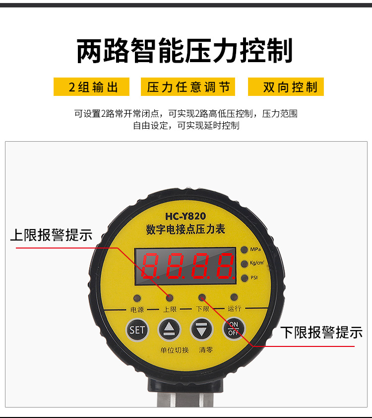 双继电器双路输出数显压力表真空电接点压力表负压压力开关控制器